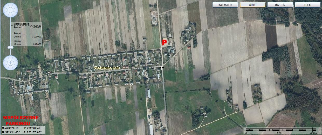 - ogrodzony parking na terenie „Ośrodka Wiosenny Wiatr” mieszczący się we wsi Woskrzenice